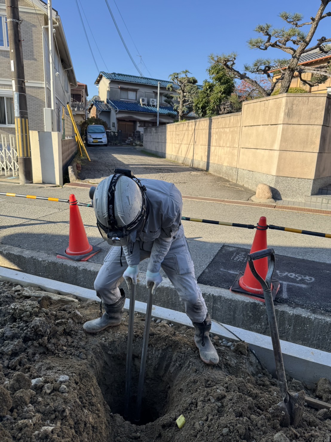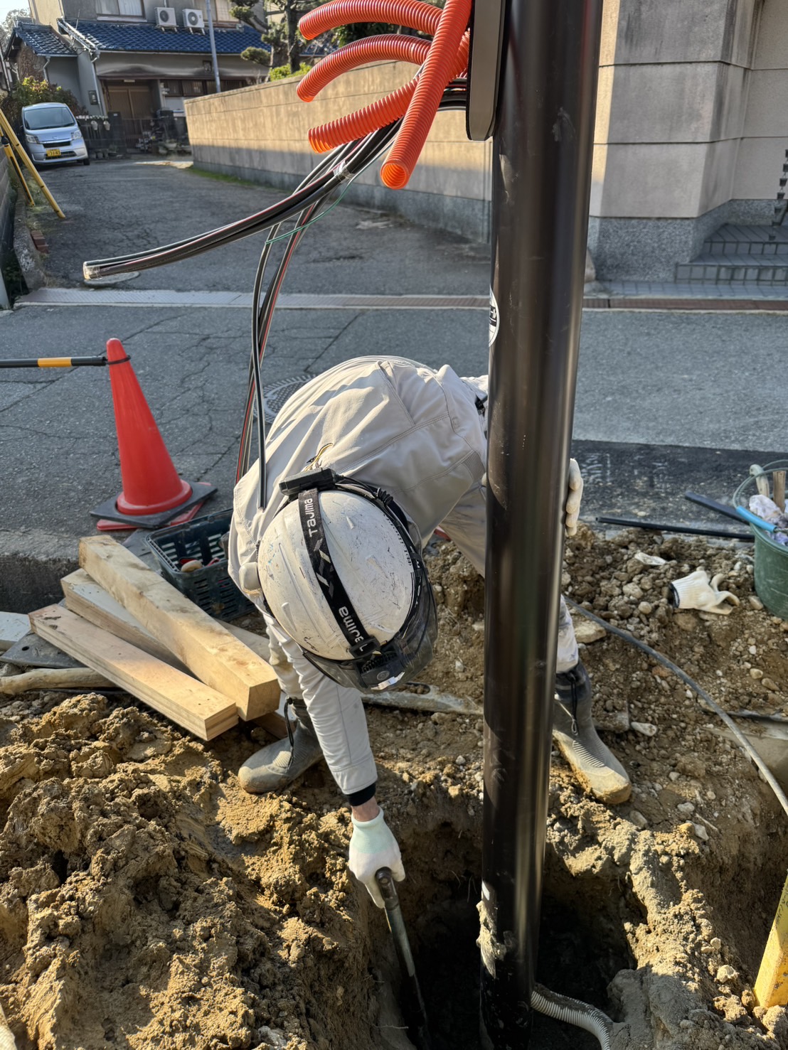 本日は豊中市にて引込ポールを設置しました。