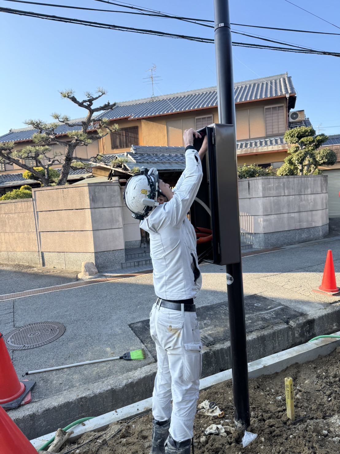 本日は豊中市にて引込ポールを設置しました。寒い日が続きますが、皆様お身体に気をつけて今年も乗り切りましょうね。